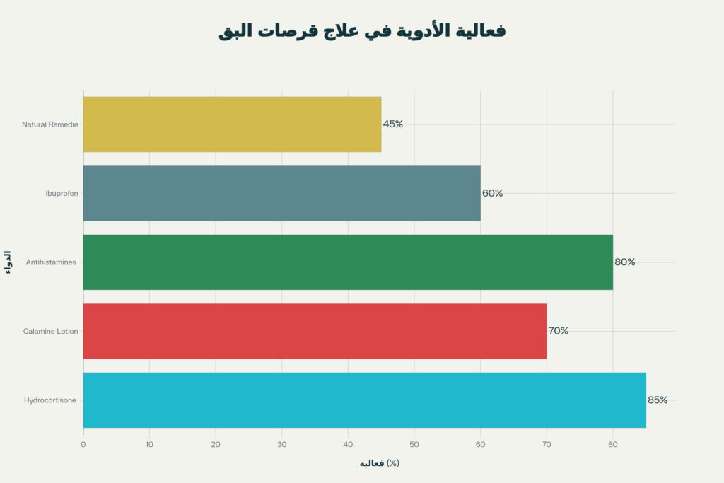 علاج قرصات البق يبدأ بغسل مكان القرصة بالماء والصابون واستخدام كريمات مثل الكالامين أو الهيدروكورتيزون لتخفيف الحكة والالتهاب.